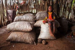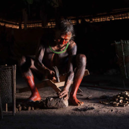 The Kayapo dedicate a large part of their time and energy to organizing and executing rituals, preceded by collective hunting or fishing. Body painting is part of everyday life in the village, and this activity is carried out by menire women from the moment they become mothers. Body Painting represents a very striking characteristic of their culture. They are very proud of the beauty of their painting, their rituals, and their art!